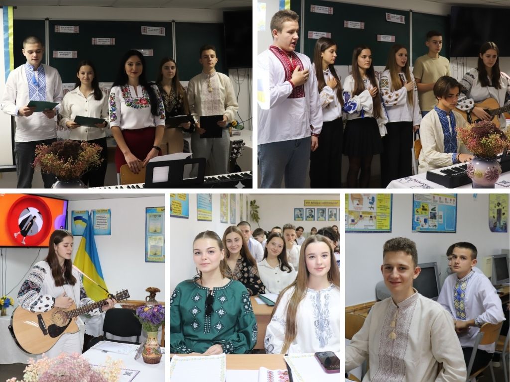 Свято розпочалося з інформаційної довідки про важливість збереження мовної спадщини, значення та історію Дня української писемності та мови. Модераторка заходу Аліна Аурелівна Гординська разом зі студентами другого курсу груп «Облік і оподаткування», «Фінанси, банківська справа та страхування» Аліною Бардош, Михайлом Савком, Вікторією Плакош та Михайлом Ковалем нагадали всім, як із глибини віків українське слово долало заборони, зберігало народну пам’ять і несло правду крізь покоління. Зворушливим доповненням стали поетичні рядки, присвячені захисникам України — тим, хто нині боронить не лише землю, а й наше право говорити українською, писати, мріяти.