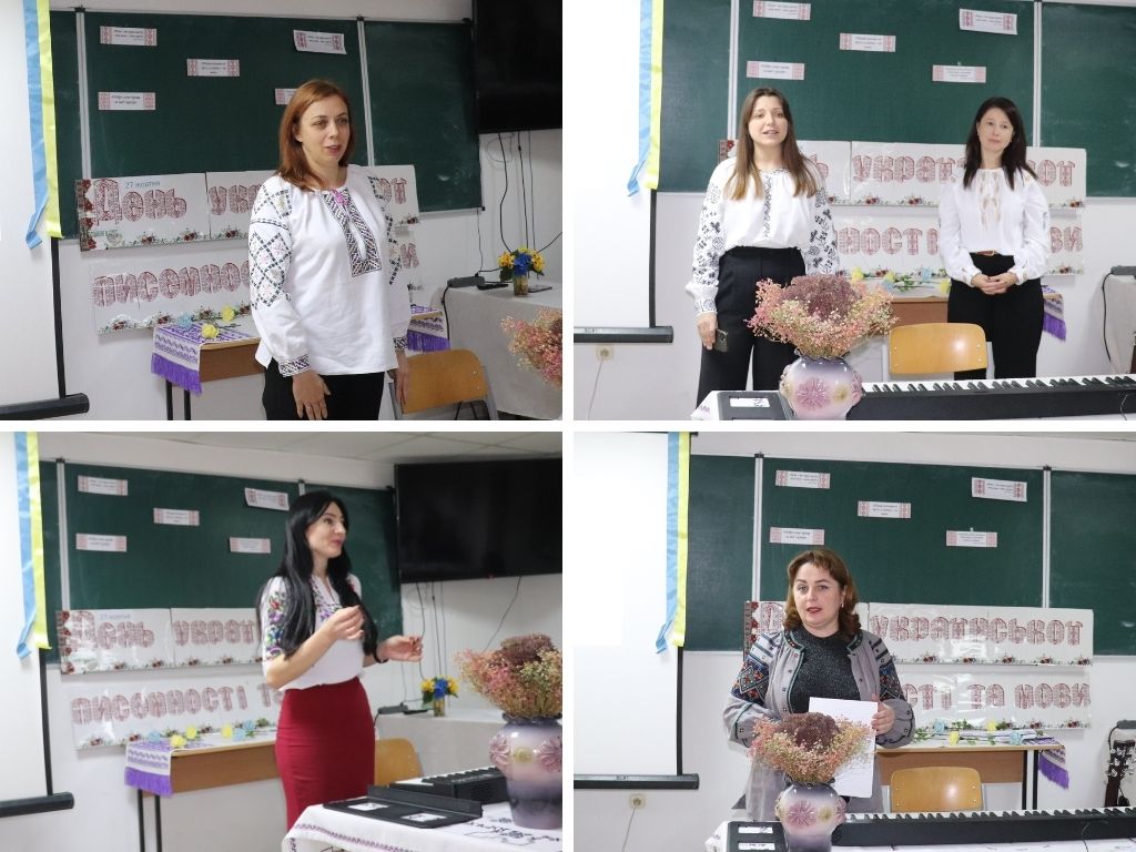 Заступниця декана філологічного факультету з наукової роботи та міжнародних зв’язків, кандидатка філологічних наук, доцентка Олеся Василівна Харьківська наголосила на знаковості Дня української писемності та мови, яке перетворює всіх присутніх на дружню родину, об’єднану високою шаною та любов’ю до рідного слова. Доповнила виступ колеги заступниця декана філологічного факультету з навчальної роботи, кандидатка філологічних наук , доцентка Галина В’ячеславівна Шкурко. За її словами, українська мова сьогодні не лише засіб комунікації, а й символ національної самобутності та свободи. Щиро дякуємо гостям, які знайшли можливість у такий особливий день завітати в наш навчальний заклад і започаткувати співпрацю між освітніми родинами: коледжем та філологічним факультетом.