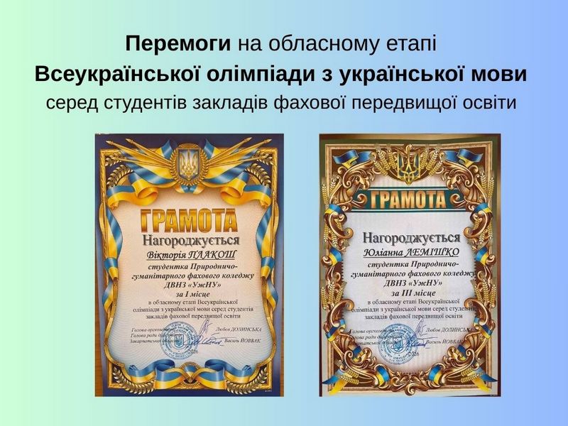 Здобувачі освіти Природничо-гуманітарного фахового коледжу знову підтвердили високий рівень підготовки, здобувши перемогу в обласному етапі Всеукраїнської олімпіади з української мови серед студентів закладів фахової передвищої освіти.
