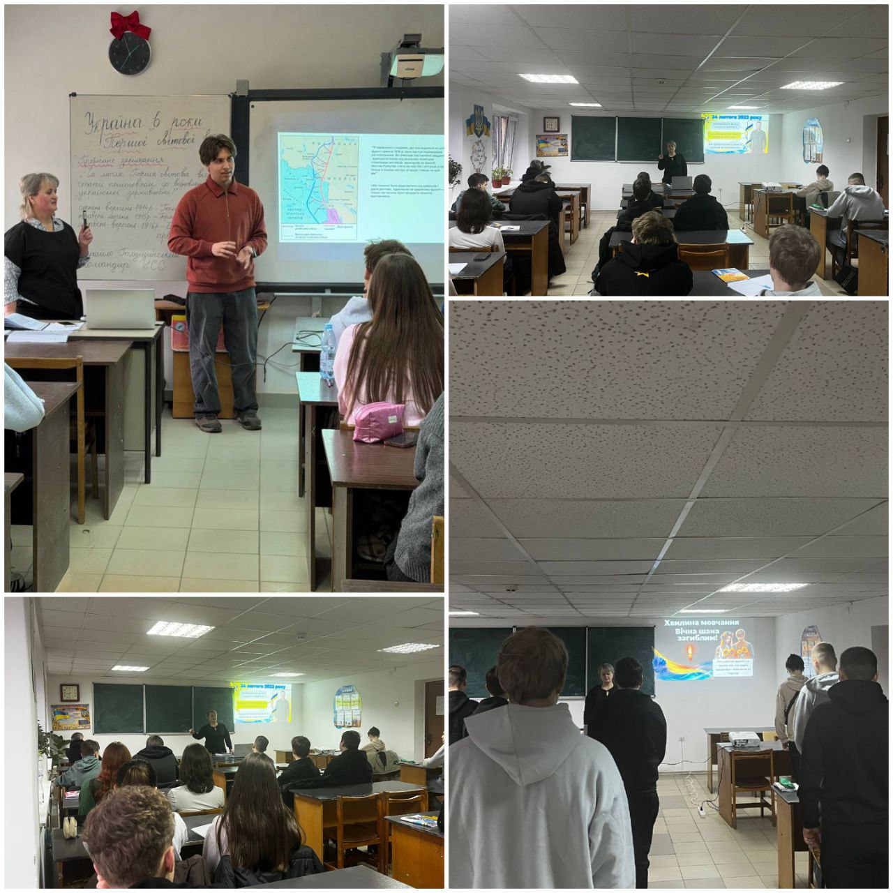 24 лютого викладач історії Лутак Т.І. провела відкрите заняття на тему «24 лютого 2022 року — початок повномасштабної війни», присвячене подіям, що стали випробуванням для всього українського народу. Під час заняття йшлося про початок повномасштабного вторгнення росії в Україну, мужність українських військових, волонтерів і всіх громадян, які стали на захист держави.