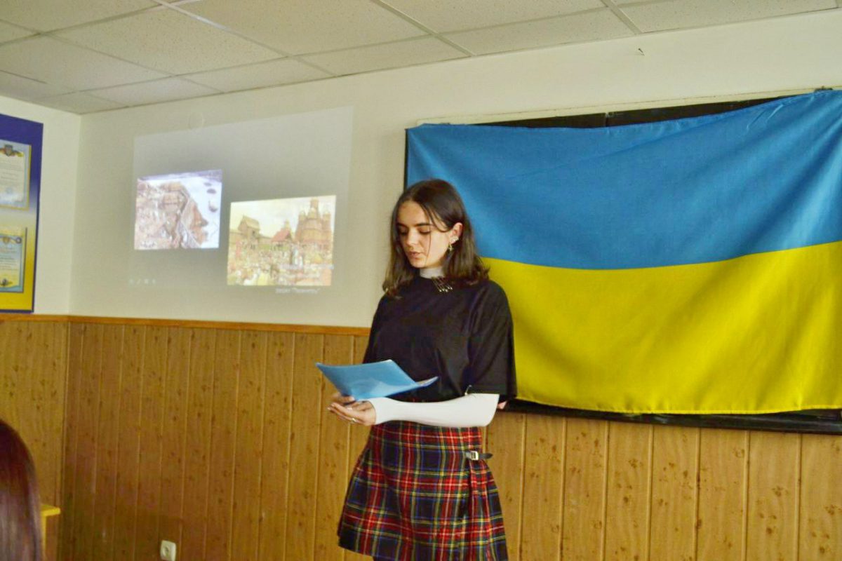 Із вступним словом звернулась до присутніх Ходанич М.М., викладач історії, яка розповіла про мету та важливість заходу для нас сьогодні.