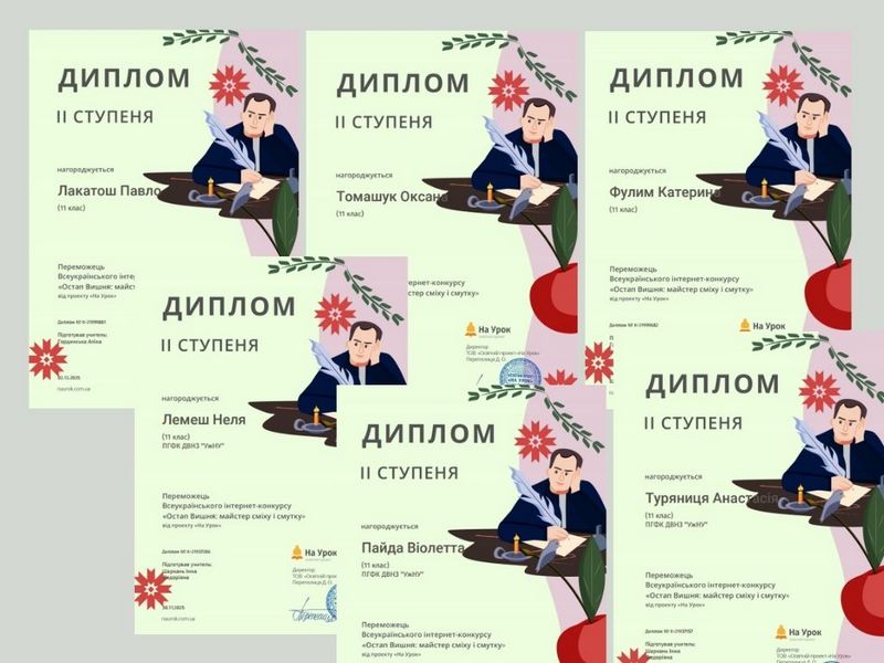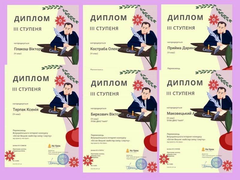 - дипломи ІІІ ступеня отримали: Вікторія Биркович, Артем Маковецький, Вікторія Плакош, Ксенія Терпак, Олександр Костраба, Дарина Прийма.