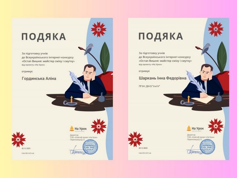 Викладачі української мови та літератури Аліна Аурелівна Гординська та Інна Федорівна Шаркань, які готували студентів до конкурсу, отримали іменні подяки від організаторів за підготовку призерів.
