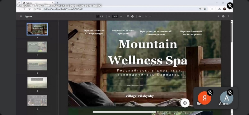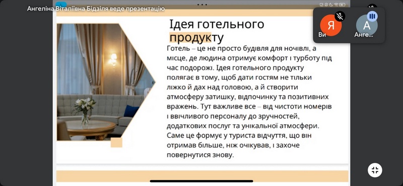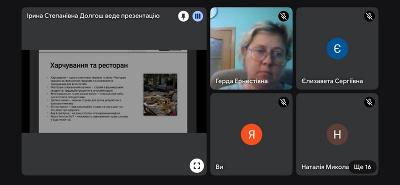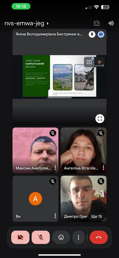 У вівторок 23 вересня відбулася online - конференція на тему: «Створення туристичного продукту». Захід провели викладачі циклової комісії Туризму Адаменко Максим Анатолійович, Белоусова – Зомбор Герда Ернестівна, Білей Наталія Миколаївна зі студентами ІІІ курсу, котрі успішно представили презентації – проєкти, у яких поділилися власними ідеями створення закладів гостинності новітнього типу в Карпатському регіоні з дотриманням нормативно-правових, екологічних вимог. Чудові презентації - проєкти показали, що наші студенти - це перспективна майбутня опора для розвитку туризму в Карпатському регіоні та Україні.